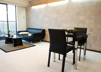 大理石で囲まれたリビングダイニングルームはお洒落です。